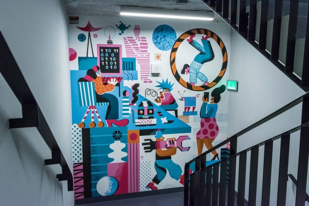– Malowanie grafik we wnętrzach ma inną specyfikę, niż malowanie dużych murali. Malarstwo musi być na niezwykle wysokim poziomie technicznym, bo jest oglądane z bliska, jest na wyciągnięcie ręki. Chcieliśmy by grafiki były spójne ideowo, ale zachowały charakterystyczne style poszczególnych artystów. – o tworzeniu murali we wnętrzach mówi Karol Szufladowicz, jeden z założycieli Good Looking Studio.
