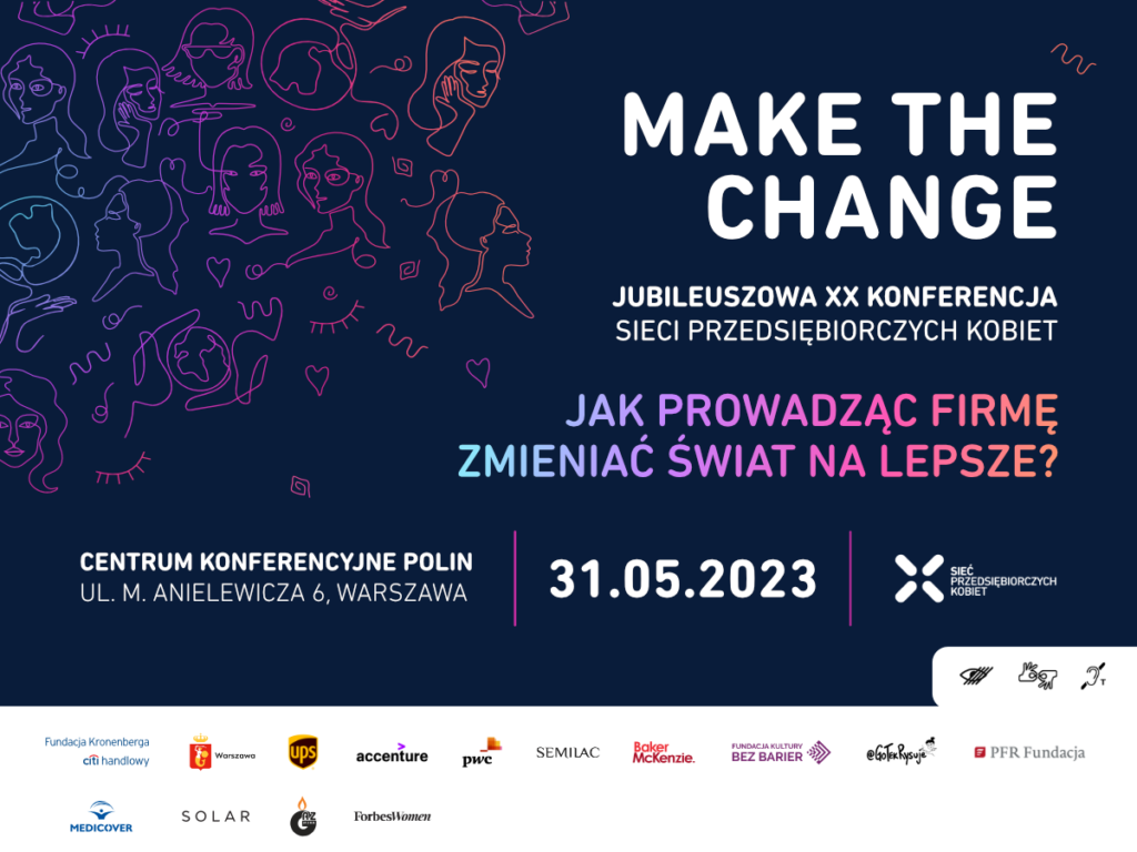 31 maja w Warszawie odbędzie się XX konferencja Sieci Przedsiębiorczych Kobiet. Wydarzenie zgromadzi ponad 30 ekspertek i ekspertów, którzy będą rozmawiać o trendach i wyzwaniach współczesnego biznesu. Konferencji patronuje wymowne hasło „Make The Change”.