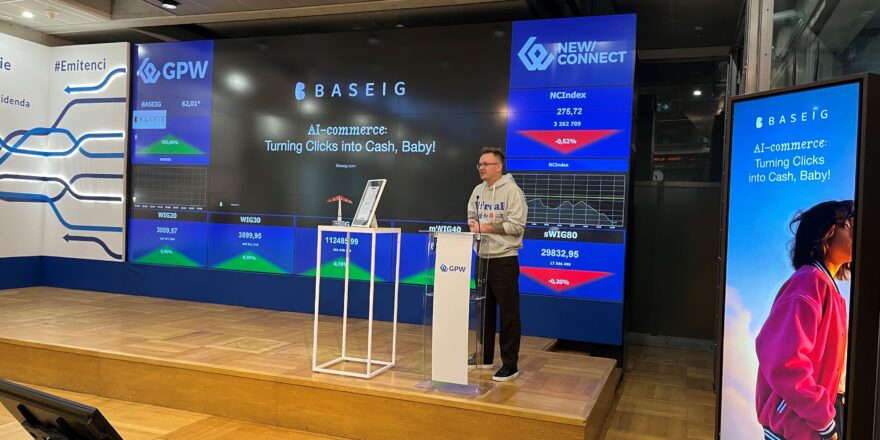 BASEIG S.A., spółka rozwijająca innowacje w obszarze AI-commerce, zadebiutowała 28 października 2025 r. na rynku NewConnect. Do obrotu trafiło 285 715 akcji zwykłych na okaziciela serii B. Podczas otwarcia notowań wartość akcji wzrosła do 15,50 zł, czyli o ponad 121 proc. względem kursu odniesienia. Był to szósty debiut na NewConnect w 2025 roku, a BASEIG to 356. spółka notowana na tym rynku.