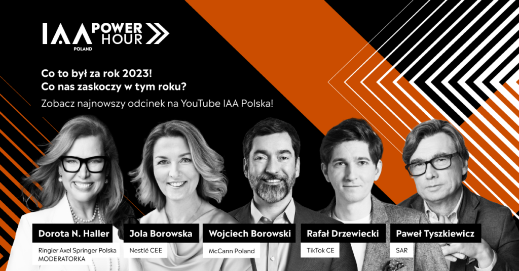Podsumowaniu najważniejszych wydarzeń minionego roku i kluczowym trendom w komunikacji marketingowej 2024 poświęcony jest najnowszy odcinek IAA POWER HOUR. W dyskusji moderowanej przez Dorotę N. Haller - Client Solutions Director, Ringier Axel Springer Polska udział wzięli: Jolanta Borowska - Head of Marketing & Consumer Communication, Nestlé CEE, Wojciech Borowski - Group CEO, McCann Poland, Rafał Drzewiecki - Country Manager, TikTok CE oraz Paweł Tyszkiewicz - Dyrektor Zarządzający SAR. Ich zdaniem, to kreatywność i efektywność oraz odpowiedzialne podejście do komunikacji marketingowej będą dominującymi trendami w bieżącym roku, a polski rynek traktowany będzie przez multiregionalne marki jako istotny wehikuł wzrostu.