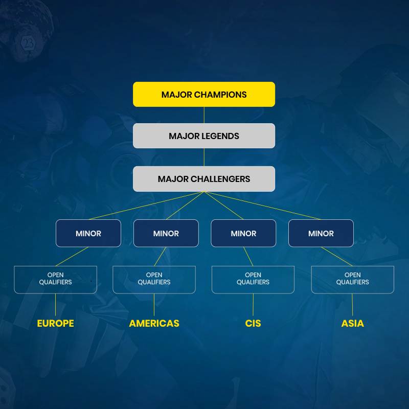 - Następnie graczy czekają kwalifikacje zamknięte do Minora. Wśród nich znajdują się także drużyny zaproszone przez organizatorów. Dla 8 najlepszych drużyn przewidziany jest awans do regionalnych Minorów.