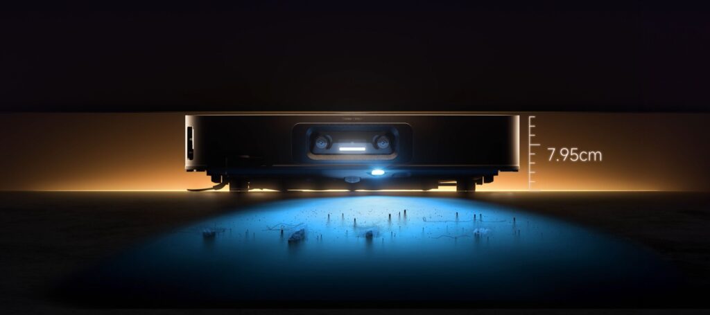 Dominującym trendem w aranżacji wnętrz są meble o niskim profilu, które – choć estetyczne – często utrudniają skuteczne sprzątanie tradycyjnym robotom. X60 Ultra został zaprojektowany tak, aby wyeliminować „martwe strefy”, w których gromadzi się kurz. Dzięki wysokości zaledwie 7,95 cm, najnowszy model w ofercie marki jest w stanie z łatwością dostać się pod niską sofę, łóżko czy szafkę RTV. To świetny przykład wykorzystania obudowy nie tylko jako zabieg stylistyczny, ale przede wszystkim jako realne rozwiązanie problemu dostępności – od teraz posiadacze takiego rodzaju mebli, nie będą musieli ich odsuwać ani „poprawiać” sprzątania po robocie.