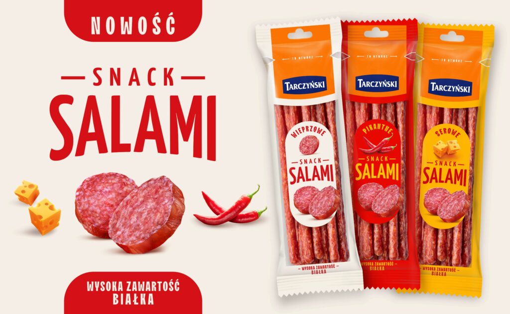 Na rynku brakowało innowacyjnych form salami – dominowały przede wszystkim klasyczne plastry. Salami Snack powstało właśnie po to, by wypełnić tę lukę. To propozycja, która łączy znane i lubiane smaki z nowoczesnym podejściem do konsumpcji przekąsek ‘on-the-go’. Wierzymy, że dzięki temu konsumenci odkryją zupełnie nowy sposób sięgania po salami – nie tylko w domowej kuchni, ale także w codziennych sytuacjach powiedział Radosław Chmurak, Wiceprezes Zarządu firmy Tarczyński S.A.