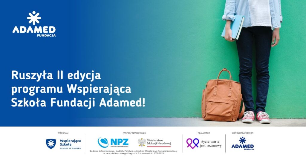Rozpoczęła się II edycja programu Wspierająca Szkoła, współorganizowana przez Fundację Adamed i serwis Życie Warte Jest Rozmowy. Tegoroczna odsłona inicjatywy pozyskała dofinansowanie w ramach konkursu Ministerstwa Edukacji Narodowej, co umożliwiło ponad dwukrotne zwiększenie liczby szkół objętych działaniami edukacyjnymi. W efekcie, do kolejnej transzy programu przystąpiło łącznie aż 55 placówek z całej Polski, które otrzymają wsparcie w zakresie profilaktyki zdrowia psychicznego uczniów i uczennic.